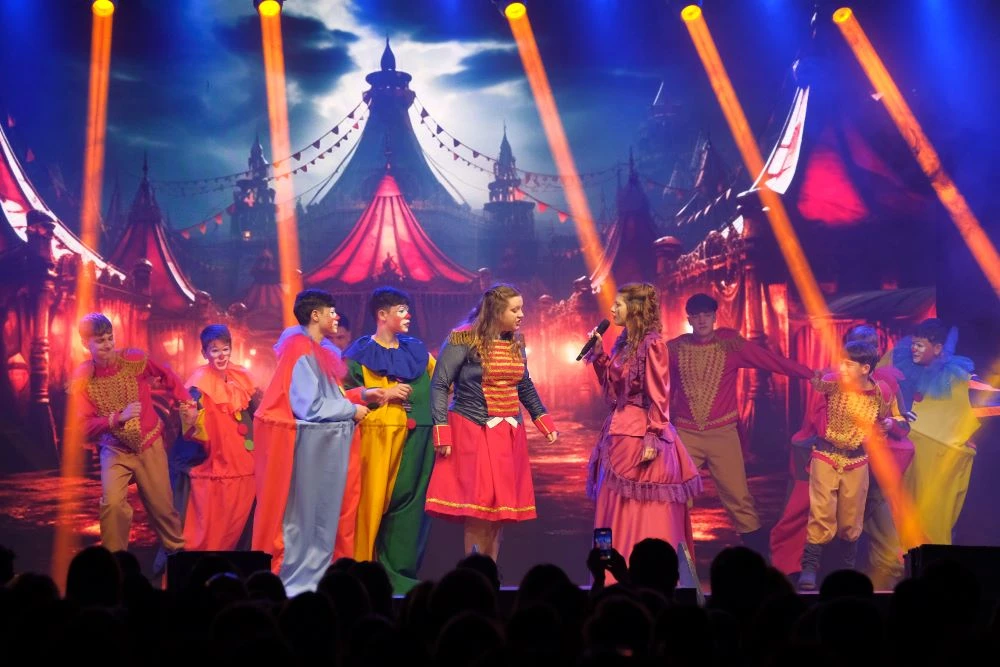 Mais de 200 alunos em palco realizando, com competência, uma apresentação capaz de despertar os mais belos sentimentos.
